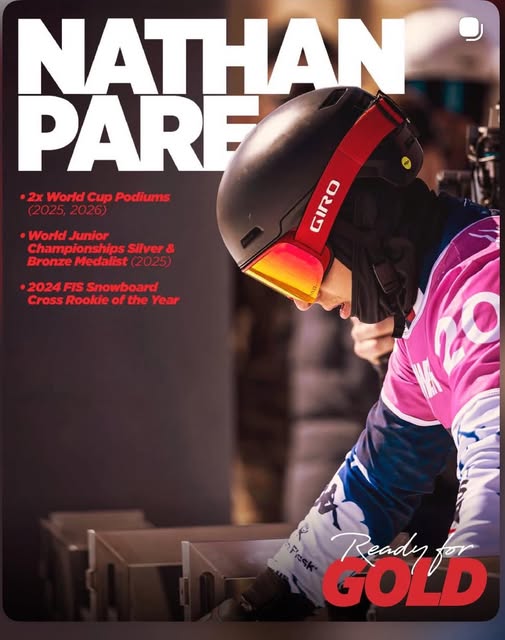 With speed, skill, and a calm competitive edge, Nathan “Nate” Pare is quickly becoming a standout on the Hydro Flask U.S. Snowboard Cross Pro Team. He was named the 2024 FIS World Cup Snowboard Cross Rookie of the Year and broke through on the World Cup circuit with a third place finish at Mt. St. Anne his first podium —a bronze medal at Mont-Sainte-Anne—racing from a challenging qualifier to the big final in front of a packed crowd. At the 2025 World Championships, he placed sixth individually and helped Team USA reach the podium in the mixed relay event. A consistent performer across Nor-Am Cup races, he has also earned multiple podiums and a top-five finish at the U.S. Championships in Copper Mountain. Off the snow, Nate applies the same determination to building houses as he does to racing, all while keeping his sights set on the 2026 Winter Olympics.